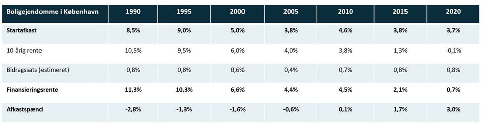 Afkastet pr. lånt krone er trods en mindre rentestigning fortsat højt set over de seneste 30 år. Det gør ejendomsinvestering interessant for den langsigtede investor, der vil tjene penge på den løbende drift.