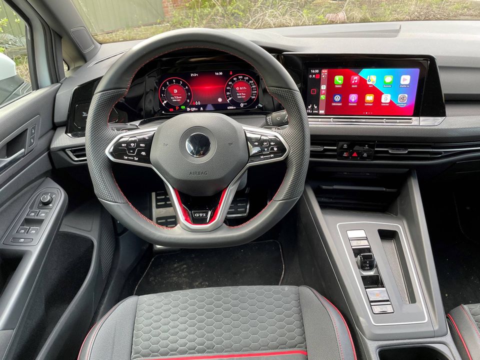 Kvalitet og finish virker dog, som i andre Golf 8-modeller, en smule pappet, hvor især sidebeklædningen på dørene også i GTI er i den tynde afdeling. Vi er endnu heller ikke blevet venner med de mange funktioner, som udelukkende betjenes på skærmen. Til gengæld har VW fået mere styr på de haptiske kontakter i rattet, som nu er mere træfsikre end på tidligere modeller.