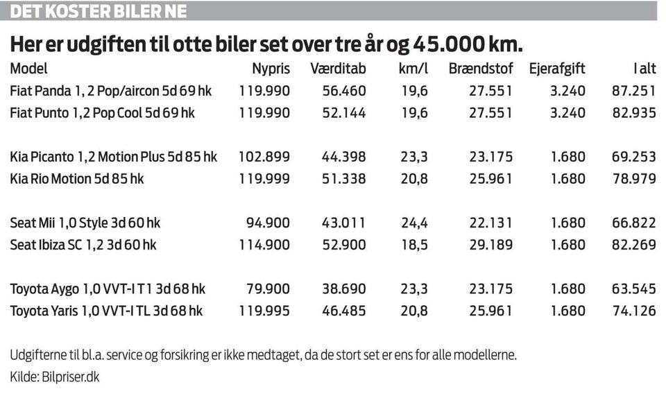 »Pointen er, at man godt kan køre billigt uden at skulle gå ned i mikroklassen. Man kan sagtens slippe for store udgifter ved at vælge for eksempel en Fiat Punto eller en Kia Rio,« siger han. Bilbasens analytiker, Jan Lang, bakker op.