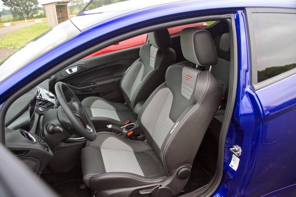 Det siger sig selv, at Forden også er spændt op til lir med sort kølergrill og ST-mærket, røde bremsecalibre og bagenden med diffuser, hækspoiler og dobbeltudstødning. Men den er ikke så fræk at skue som Peugeot, og indvendigt er det nærmest kun det fede læderrat og sportsstole fra Recaro, som adskiller den fra en ordinær Fiesta.
