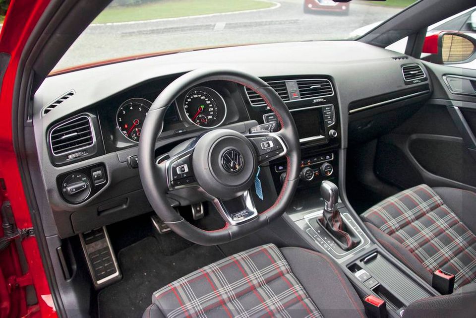 Focus er den mest outrerede som med sine store skørter, sit surfbræt af en bagspoiler, udsigt til de skrigrøde bremsekalibre og centreret midterudstødning taler direkte til reptilhjernen hos din indre Brian. På den anden side står den i forvejen skarptskårne Golf og byder sig til med former, der buler de rigtige steder, som en bodybuilder i designerhabit. Men under de anonyme linjer gemmer sig et stykke klassisk tekstil, der er nedarvet fra ur-GTI'en: et småternet sædebetræk Jo, stilen er i orden. Småspraglet uden at være vulgær, som det sig hør og bør på golfbanen.