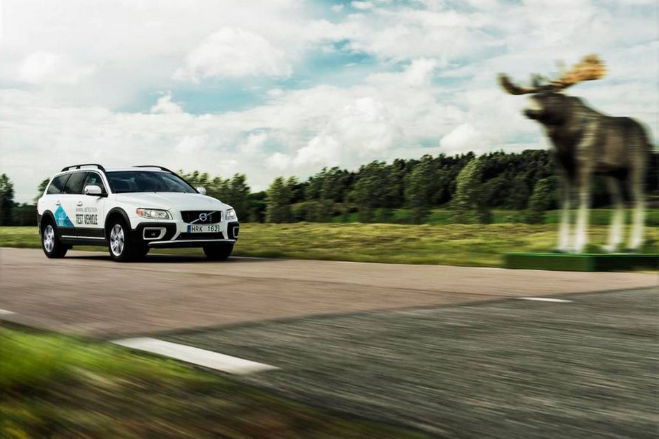 Ny Volvo kører uden om elge