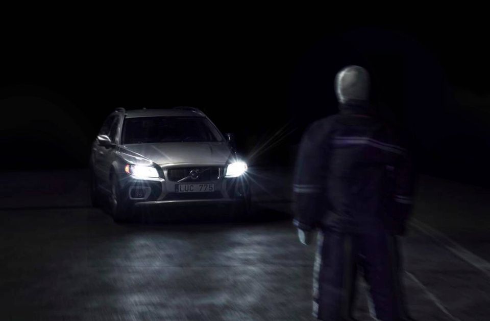For at give en forsmag på morgendagens sikkerheds-teknik har Volvo inviteret til en test af en stribe systemer monteret i de nuværende modeller som prototyper. Under en meget realistisk demonstration bliver vi bedt om at køre ind i en mørk kælder med 25 km/t og kan på egen krop mærke, hvordan bilen pludselig bremser hårdt op for en fodgænger-dummy, der næsten er skjult i mørket.