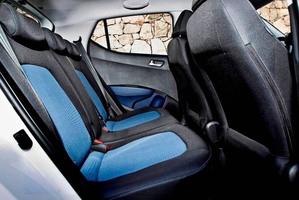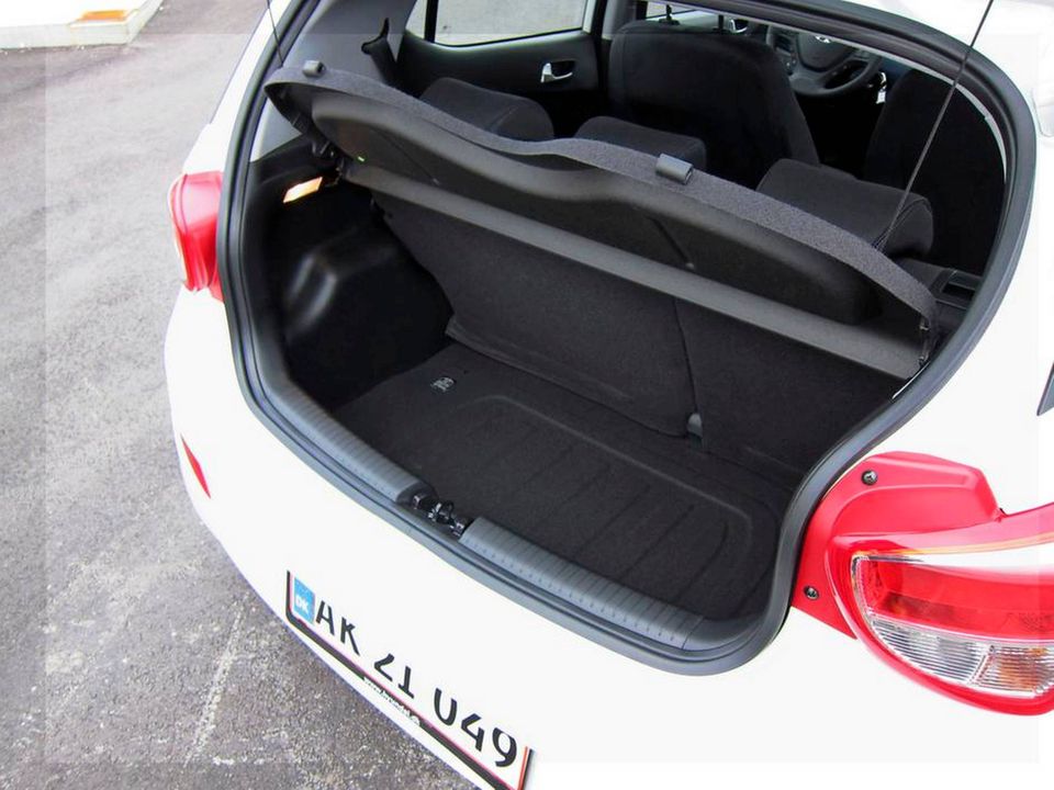 En anden god detalje er bredden af i10. To brede voksne kan sidde uden at gnubbe skuldre på forsædet, og det er positivt, og ved bagsædet er der så god plads, at man faktisk føler, at man sidder i en større bil.