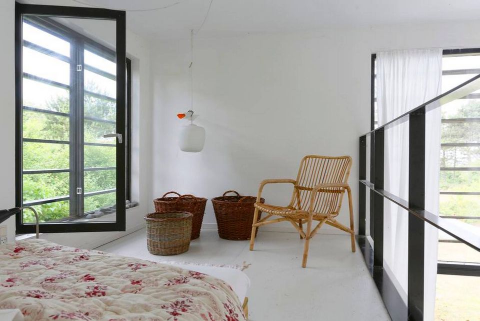 »Det vigtigste i huset var, at det ikke skulle ligne lejligheden derhjemme. Jeg ville ikke flytte fra et HTH-køkken i min lejlighed og ud i et nyt herude. For mig skal det adskille sig fra det sted, jeg opholder mig til dagligt. Sengen står også på noget gammelt træ, vi havde til overs, da vi byggede huset. Det passer fint til ideen om, at det ikke skal være så poleret og pænt her,« siger hun.