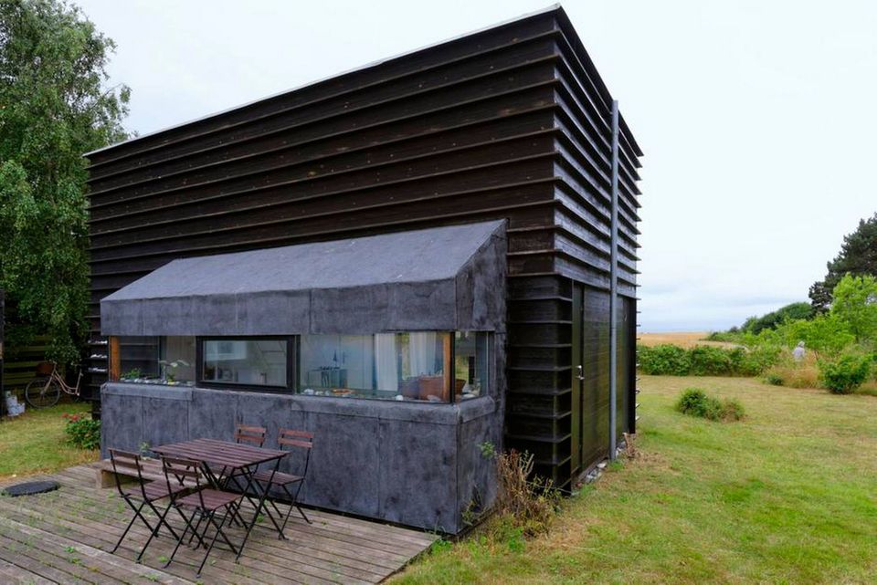 Det sorte sommerhus aftvang løftede øjenbryn og forundrede blikke, da det blev bygget. For hvem vælger at slå sig ned på en kartoffelmark – i et hus, som oven i købet ligner en sildekasse? Svaret er Dorthe Jørgensen, der i 2001 byggede huset sammen med en ven, som også tegnede det. Mens andre så en bar kartoffelmark, faldt hun for den rå natur – mosen, markerne og havet i horisonten.