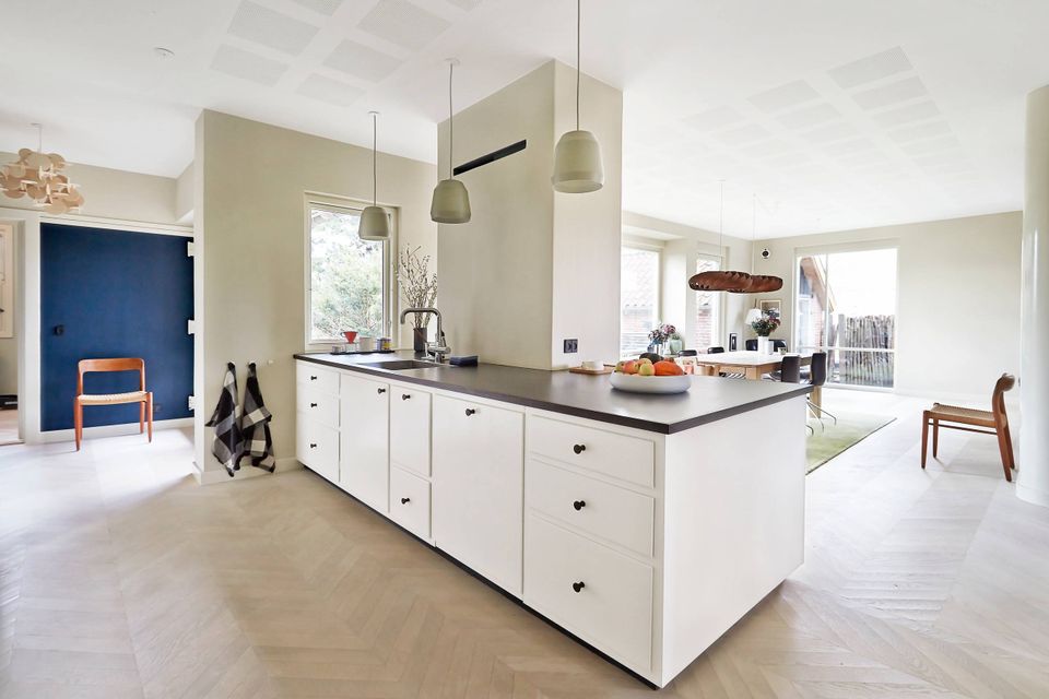 - Nyt forramme-køkken bygget, så det ligner husets oprindelige skabe bygget af firmaet Peter Klint, der også har lavet fronterne i valnød i badeværelset på 1. sal.