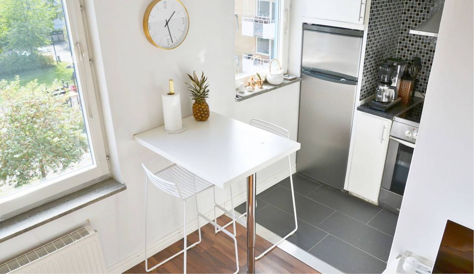 Lejligheden består af et stort rum, en gang og et lille badeværelse og er kun 26 kvadratmeter. Felicia Marthe er derfor også blevet ekspert i compact living.
