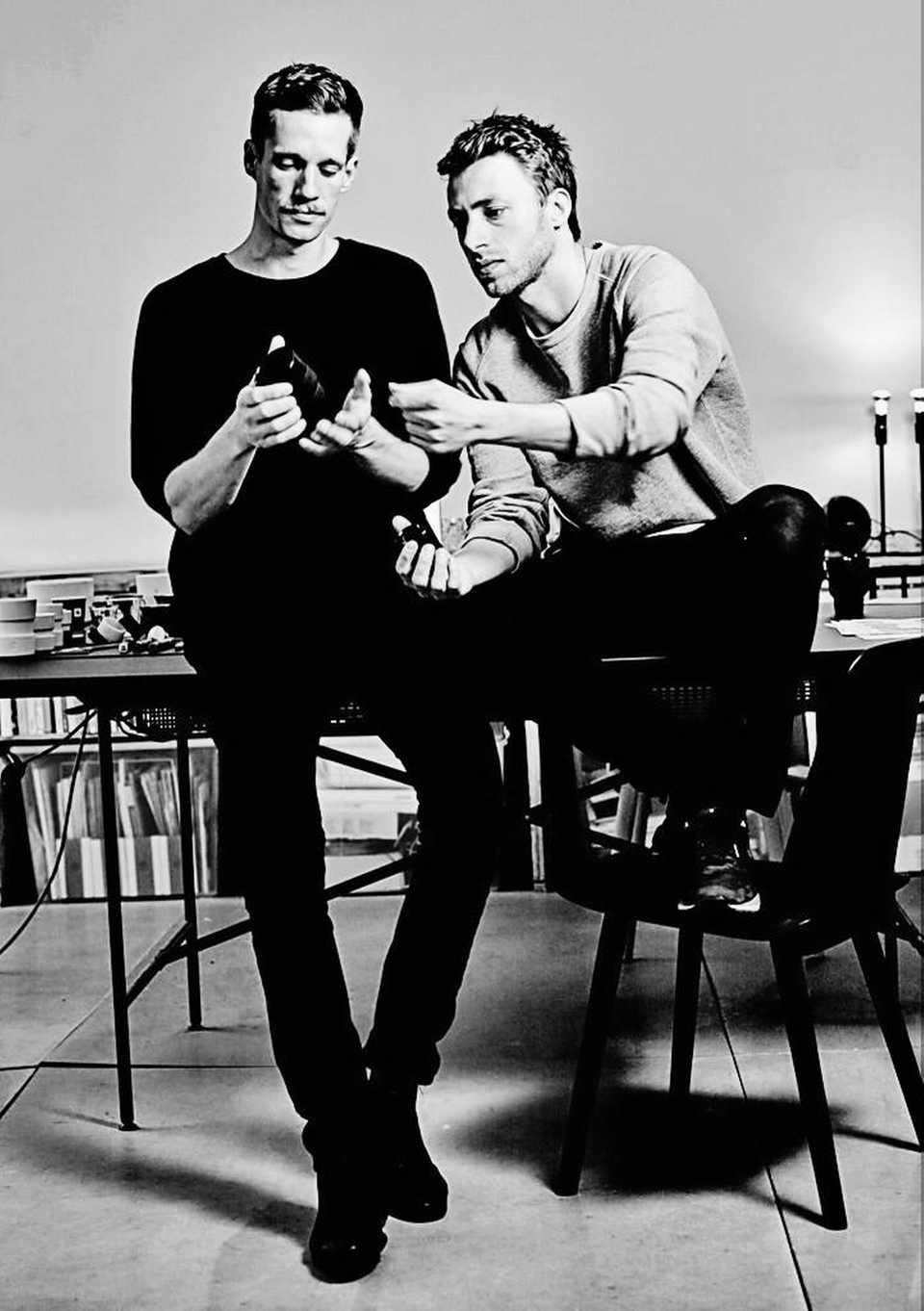 Koppernes kulsorte porcelæn er belagt med blød silikone på den nederste del, hvor man holder på koppen. Materialemikset er noget af det, den opkommende designduo, der også har designet for det danske superbrand Muuto, især er kendt for. Det er det, der kendetegner deres design: blandingen af teksturer og materialer – en af tidens helt store tendenser generelt på designscenen.