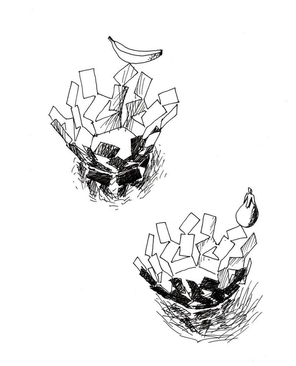 »Alle skåle er lavet med øje for runde frugter. Æbler, appelsiner, blommer. Det var noget, der optog mig. Jeg har ikke lavet skålen ”La Stanza dello Scirocco” bevidst for at løse et problem eller ud fra en bestemt funktion, men det viste sig at være en perfekt skål til bananer. Det var først, da designet var færdigt, at det gik op for mig, at det er det eneste asymmetriske fad i hele Alessis sortiment,« fortæller Mario Trimarchi.