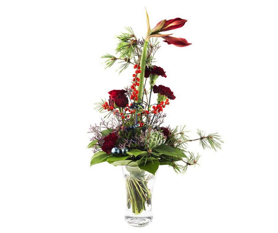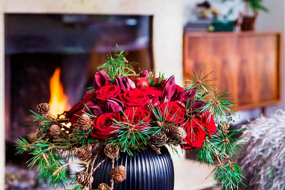 I år ser vi kobber og ekstra meget rødt i blomsterbuketter og dekorationerne op mod jul, men der er også plads til en masse leg og luftige opsatser med blandt andet amaryllis i.