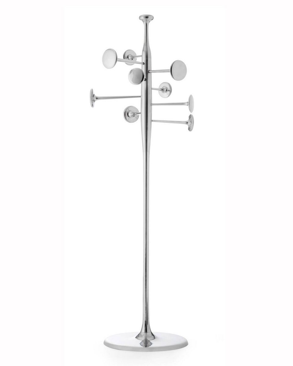 Det danske designhus Mater har lavet den finurlige stumtjener Trumpet Coat Stand, som fylder meget lidt i entréen, men som samtidig pynter. Fordi der er mange “trompetarme“ at hænge overtøjet på, er møblet optimalt til den lille entré. Trumpet Coat Stand kan fås i farverne aluminium og sort. Pris: 5.000 kr.