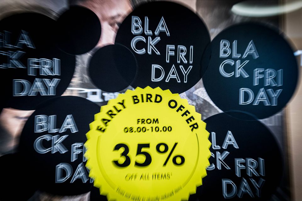 Black monday, tuesday, wednesday, thursday, friday, saturday, sunday, black week, black month, black year. Sale, sale, sale (det betyder udsalg!). Fødselsdag fire gange om året. Flag, balloner og overstadig glæde overalt. Rabatter, nedsat, nedsat, spar, spar, spar.