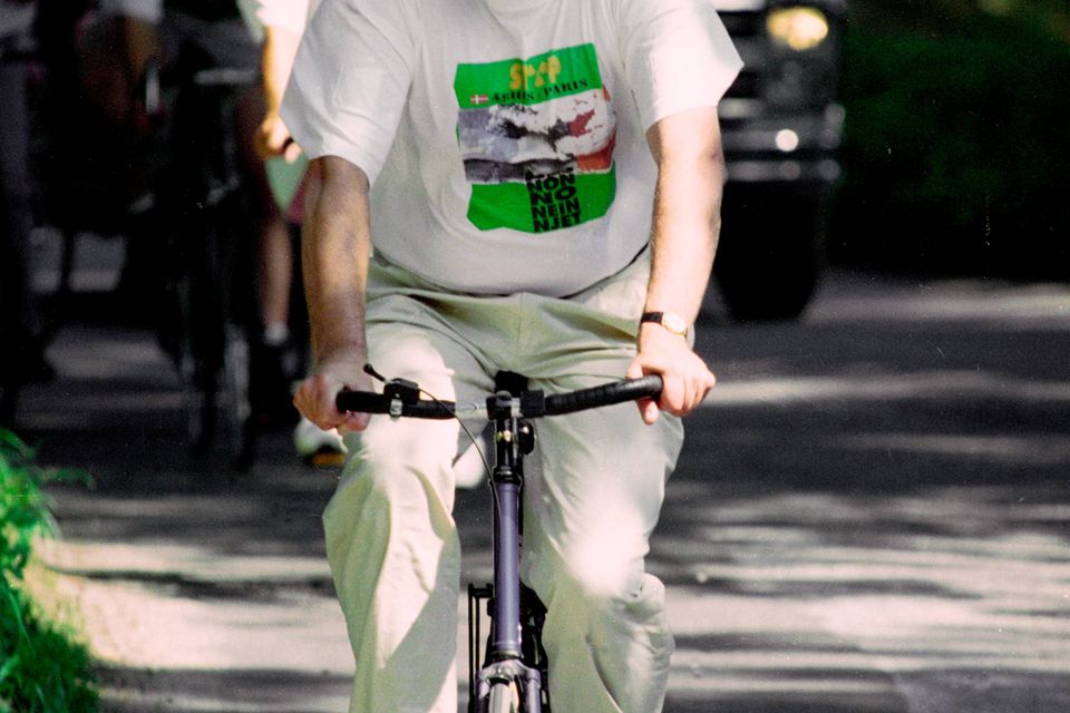 Det måske mest kendte billede af Poul Nyrup Rasmussen er fra 1995, hvor han iført en cykelhjelm deltog i en demonstration mod franske atomprøvesprængninger i Stillehavet. Hjelmen var for lille, og Nyrup Rasmussen blev opfattet som noget bøvet. En Google-søgning på ”Poul Nyrup Rasmussen cykelhjelm” udløser 7.210 resultater på 0,36 sekund.
