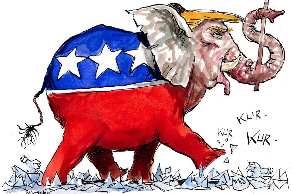 Trump giver mindelser om Dirch Passer i ”Charles Tante”, men det holder ikke, for forestillingen i Det Hvide Hus er dødsensalvorlig.