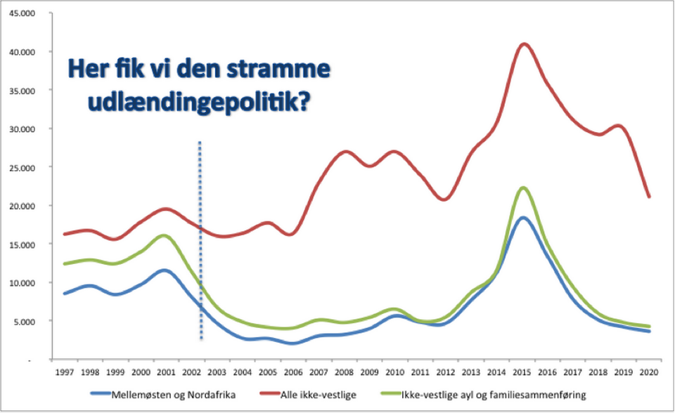 At dømme efter antallet af ikkevestlige indvandrere skete der overhovedet ikke en stramning.