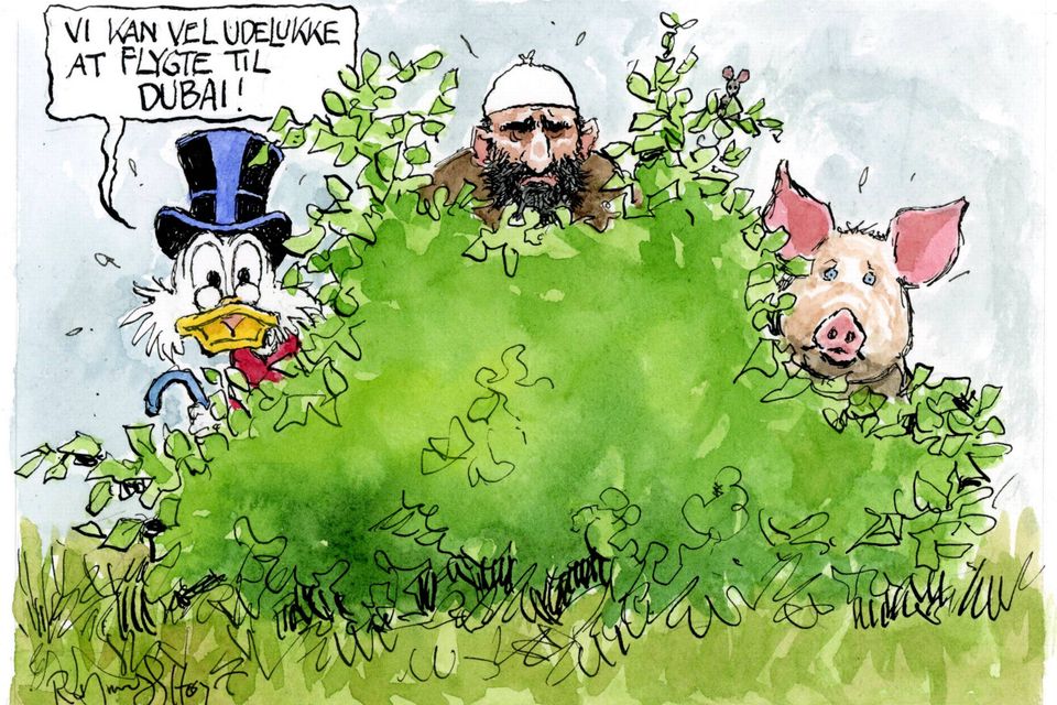 Dette er en kommenterende tegning: Dagens tegning er udtryk for tegnerens fortolkning af aktuelle begivenheder. Jyllands-Postens holdning udtrykkes alene i den daglige ledende artikel.