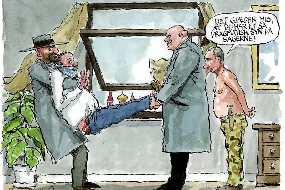 Dette er en kommenterende tegning: Dagens tegning er udtryk for tegnerens fortolkning af aktuelle begivenheder. Jyllands-Postens holdning udtrykkes alene i den daglige ledende artikel.