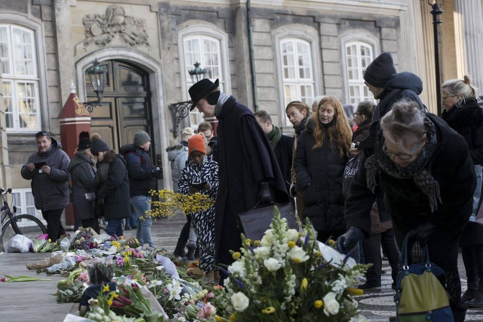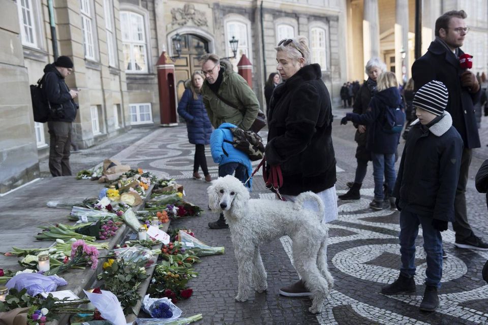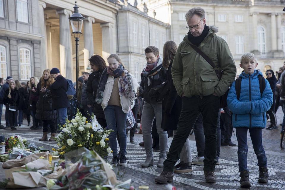Godt 300 km derfra ved regentparrets residenspalæ, Amailienborg: På trappesatsen foran Christian IX’s Palæ lå hundredvis af blomster og to kongekroner, en pige havde lagt en hjemmelavet halskæde og en tegning med det danske og franske flag.