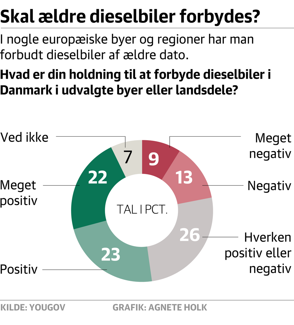 Næsten halvdelen af danske bilister ønsker forbud for dieselbiler af ældre dato, viser en ny undersøgelse. Oppositionen støtter op om ønsket.