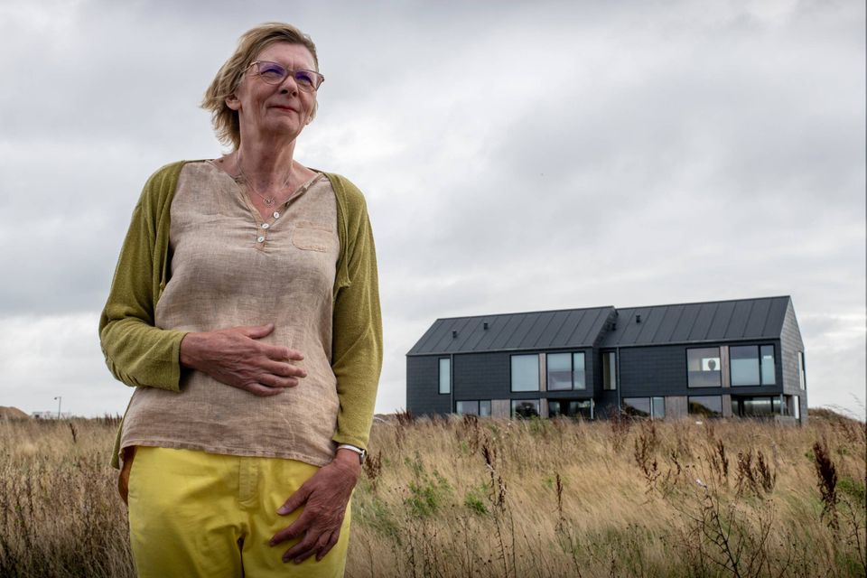 Et par hundrede meter uden for byskiltet i Ringkøbing i Vestjylland bor Kirsten Mortensen i et enligt sort hus med udsigt over fjorden.