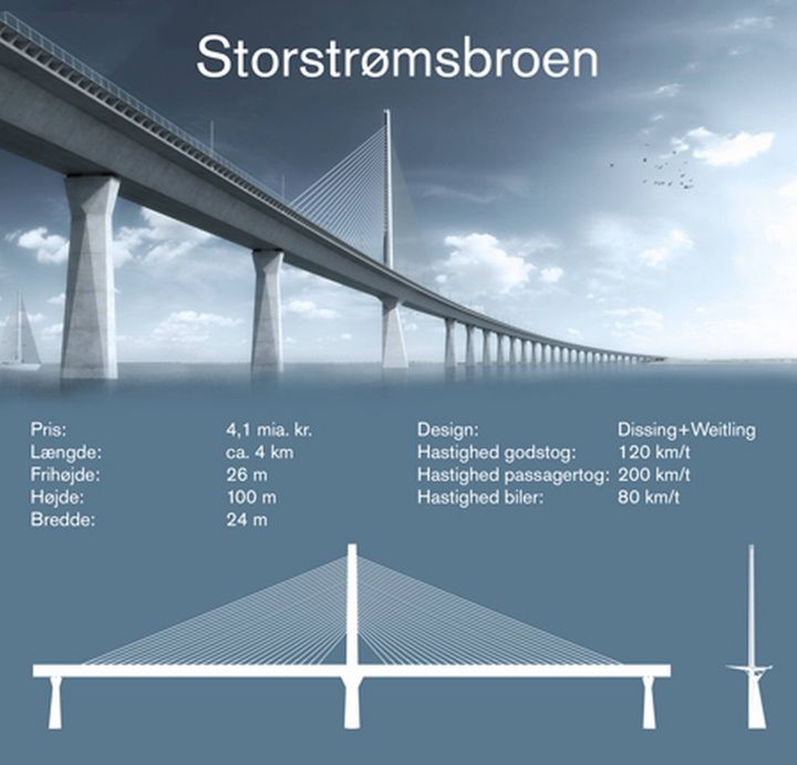 Opførslen af den nye Storstrømsbro koster 2,1 mia kr. Den samlede pris for projektet, som også indebærer nedrivning af den eksisterende Storstrømsbro, er dog 4,1 mia. kr.