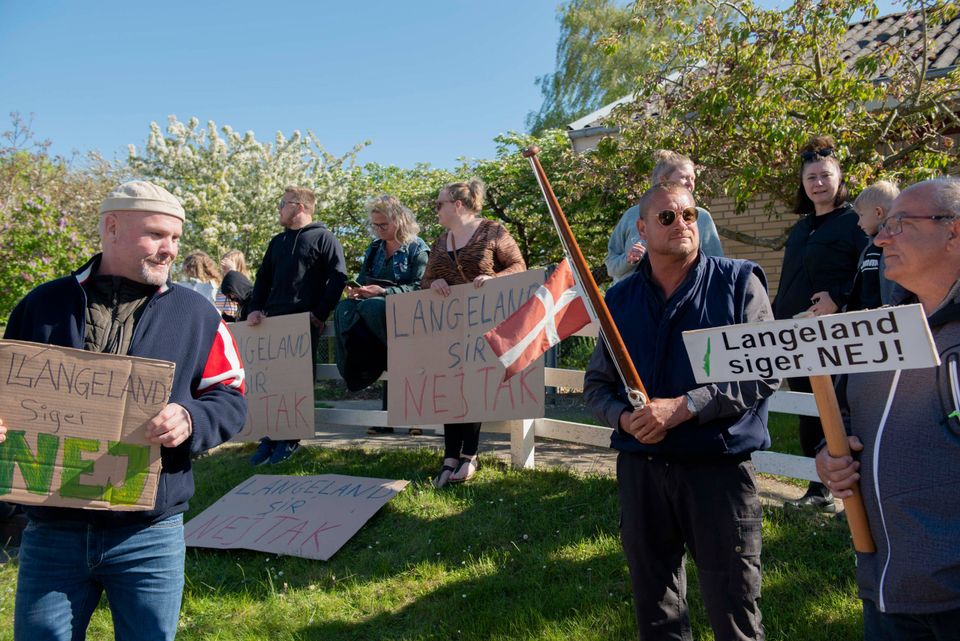 »Der er vejskilte overalt i vejkanten, hvor der står, ”Langeland siger nej tak!”. Vi kørte ned af en villavej, hvor der blev flaget på halv, og de steder, hvor der ikke var en flagstang, havde man sat små fødselsdagsflag ud, som man så havde sat ned på halv,« fortæller han og uddyber, at der på en strækning af 100 meter er opsat 16 skilte.