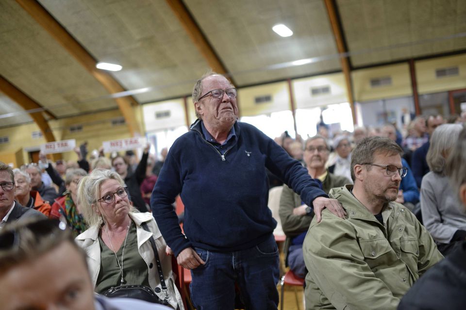 »Hvor er demokratiet?« råbte en enkelt tilhører, da ministeren fortalte, at beslutningen er taget uden at inddrage lokalpolitikere eller lokalbefolkningen og udelukkede af regeringen.