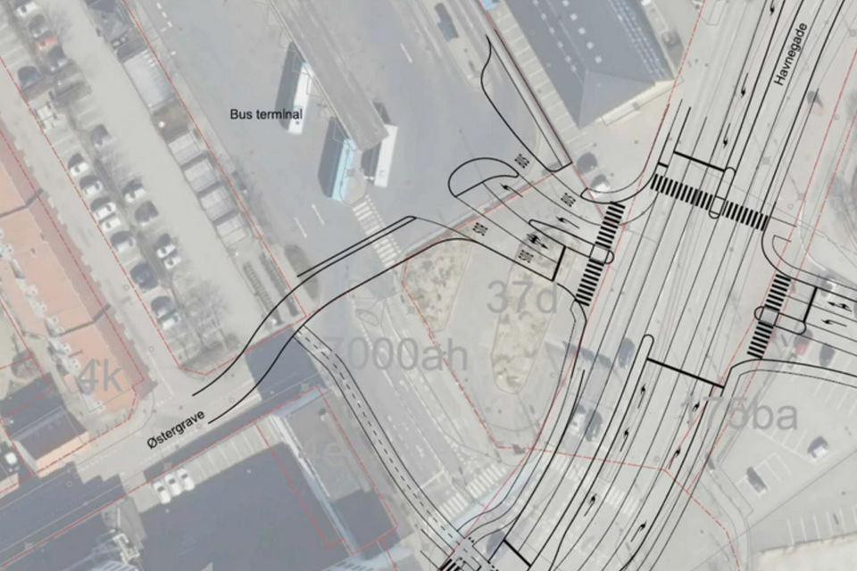 Krydset ved Havnegade skal flyttes, hvilket er en del af udviklingsplanen for Flodbyen. Ved at flytte indkørslen til busterminalen cirka 70 meter mod nordøst vil der være plads til at sikre cyklister og samtidig skabe forbindelse mellem midtbyen og Bolværksgrunden.