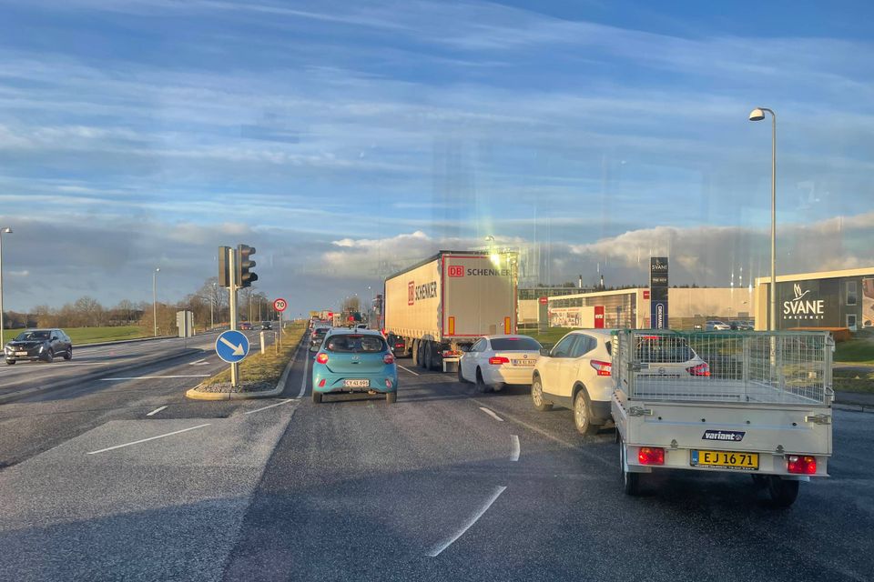 28 ton sand skabte trafikkaos: Stort uheld gav kilometerlang kø gennem byen