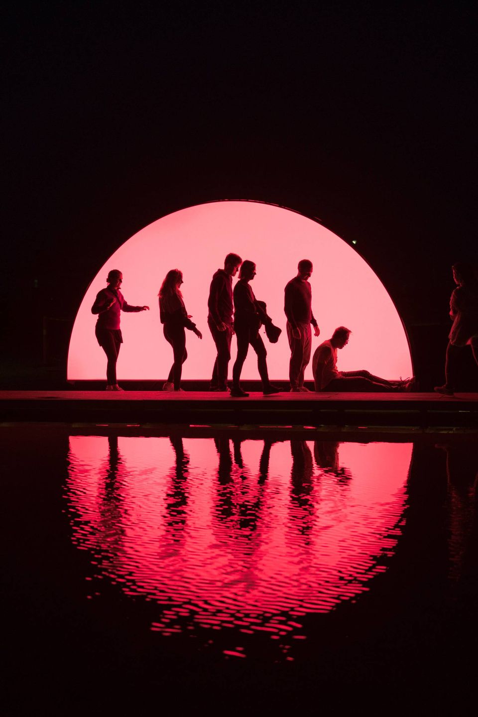 Lørdag den 26. august - Lysfesten vender for tredje gang tilbage til Aarhus Festuge. "The Sunset Garden", som er lavet af de lettiske lysdesignere Those Guys Lighting, er et af værkerne i Lysfesten placeret ved Spejlbassinerne mellem Navitas og Bestseller-bygningen ved Aarhus Havn. Foto: Emilie Toldam Futtrup