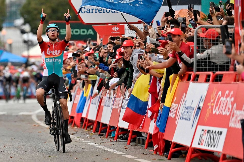 Søndag den 27. august - Den danske cykelrytter Andreas Kron (Lotto Dstny) vandt 2. etape af Vuelta a España efter flot solokørsel på de sidste 3 km. Det er første gang i karrieren, at Andreas Kron vinder en etape i en grand tour. Foto: Pau Barrena/AFP