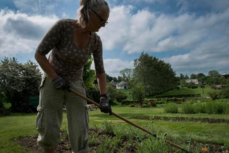 »Efterhånden som tingene er opstået, har det fået sin egen økonomiske struktur. I princippet kan alle være anpartshavere, men i realiteten er det folk, som har tilknytning til stedet. Det lykkedes os at rejse penge til udbygningen uden at låne en øre, endda med et temmeligt kostbart projekt med CO2-neutral opvarmning med brændefyr og solfangere. Det er mere en holdning end en økonomisk gevinst. Hvis man arbejder med energi, er man også nødt til at tænke på fysisk energi. Urtehaven er økologisk, og vi har en lille økologisk butik, en indkøbsforening, der er et fjerde økonomisk projekt,« fortæller hun.