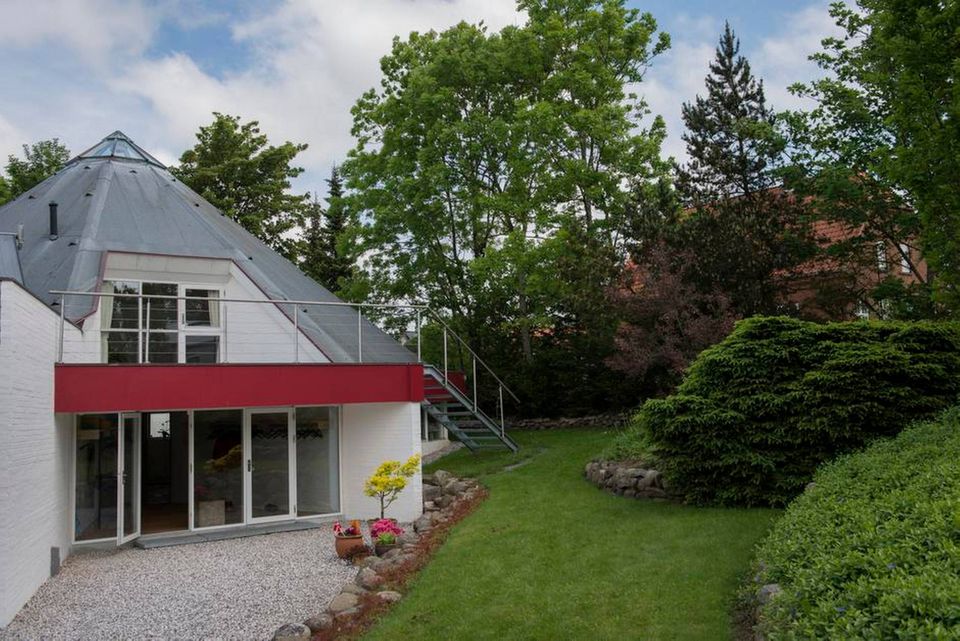 »Vi flyttede hertil i 1987, og året efter var Centeret færdigt. Der gik dog yderligere et par år, inden vi kunne flytte ind i et hus, vi byggede ved siden af. Derfor boede vi i tre år på 1. salen i huset ovre bagved, fire personer plus byggekontor på ialt 45 kvm med skråvægge. Så det var virkelig noget, vi ville. Det er en helt anden livsform, end hvis vi havde valgt at være psykolog og præst med to indkomster og bo i præstegården med det liv, det kunne have givet.
