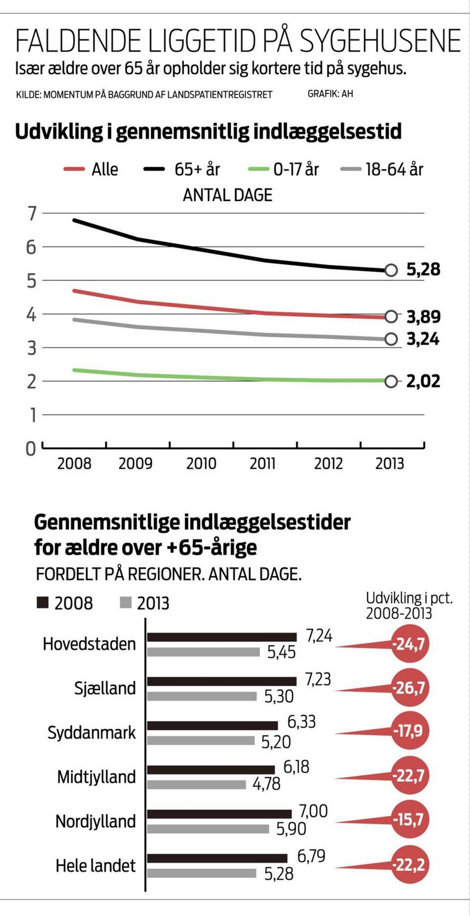 Mens børn, unge og voksne har oplevet en reduktion på henholdsvis 13 og 15 pct., er liggetiden for ældre reduceret med 22 pct.