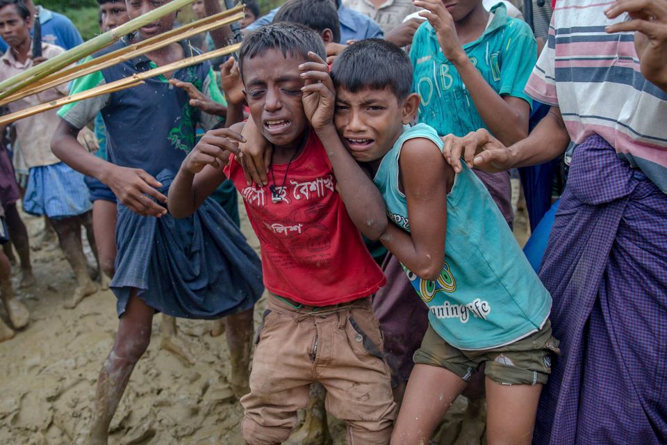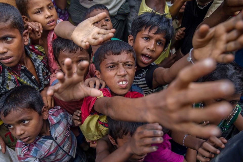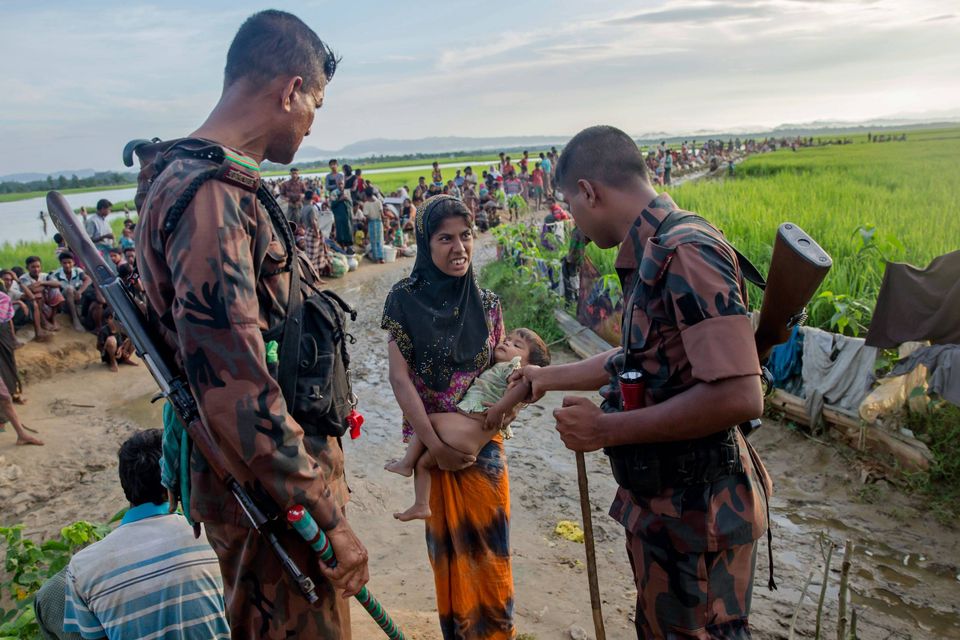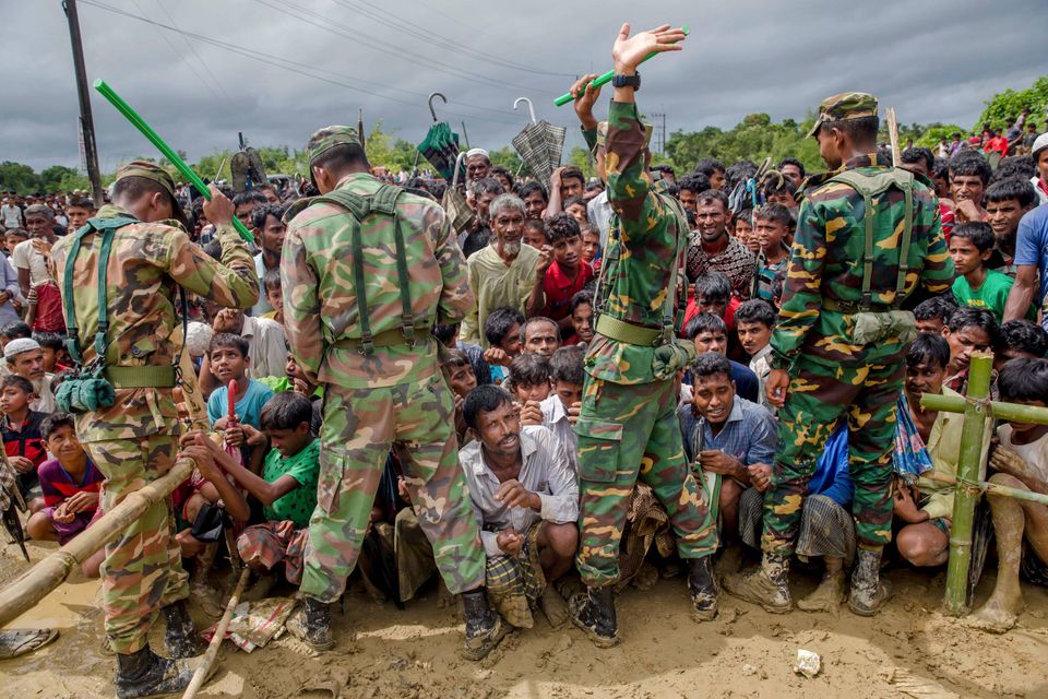 Flygtningekvinden "M" viser bidemærker i brysterne, som hun fik fra de soldater der voldtog tilbage i Myanmar. "M" blev voldtaget af seks soldater fra militæret i Myanmar, efter de havde kvalt hendes to år gamle søn til døde. Hun fandt senere ud af, at hun var gravid og fødte en søn. Hendes mand bebrejder hende for voldtægten og vil ikke have noget at gøre med hendes barn. Foto: Wong Maye-E/Ritzau ScanpixRohingya-drenge græder, da de bliver skubbet væk fra en nødhjælpsuddeling ved Balukhali-flygtningelejren i Bangladesh. Foto: Dar Yasin/APRohingya-flygtninge leger i Balukhali-flygtningelejren i Bangladesh. Foto: AP Photo/Altaf QadriDette satellitbillede fra 2016 viser de omfattende ødelæggelser i rohingyalandsbyen Kyet Yoe Pyin i Rakhine-staten i Myanmar. Foto: DigitalGlobe via APFlere rohingyaflygtninge er døde i deres forsøg på at flygte fra Myanmar til Bangladesh. Her er ofre fra et skibsforlis i Den Bengalske Bugt ved at blive bragt i land. Kun 24 af de i alt 80 flygtninge ombord på båden overlevede. Foto: Dar Yasin/APRohingyabørn rækker hænderne ud for at få fat i mælk og chokolade, som bliver delt ud i Taiy Khali-flygtningelejren i Bangladesh. Børn udgør op til 60 procent af de flygtede fra Myanmar. Foto: Dar Yasin/APFlygtningekvinden "N", 17 år gammel, siger hun er blevet voldtaget af soldater fra Myanmars hær. Hun er fotograferet i sit telt i flygtningelejren Kutupalong i Bangladesh. Foto: Wong Maye-E/APEn mandlig rohingyaflygtning bærer en ældre kvinde på vej over grænsen fra Myanmar til Teknaf i Bangladesh. Foto: Gemunu Amarasinghe/APEn nyankommen rohingyaflygtning lader grænsesoldater fra Bangladesh tjekke sit syge barn, før de lader hende fortsætte til flygtningelejren i Palong Khali, hvor hun kan få hjælp af sundhedsmedarbejdere. Foto: Dar Yasin/APMyanmars hær indledte i august sidste år en offensiv mod det muslimske rohingya-mindretal i deres primære opholdssted, delstaten Rakhine. Her brændes en bygning ned i en lejr for statsløse rohingyaer nord for byen Sittwe. Foto: APEn rohingyakvinde tører sveden af panden, mens hun står og venter på at få udleveret nødhjælp i Balukhali-flygtningelejren i Bangladesh. Foto: Dar Yasin/AP