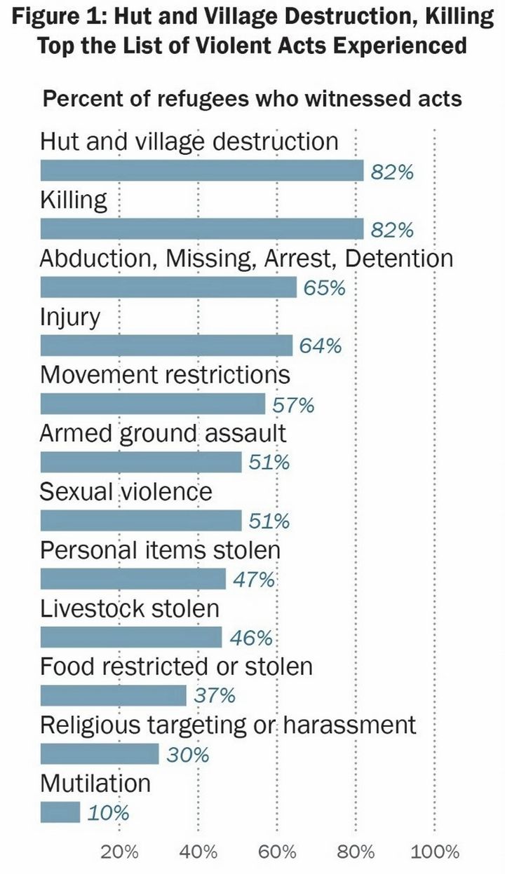 Den amerikanske rapport rummer rystende tal. Blandt de interviewede 1.024 flygtninge har 82 pct. overværet et drab, totredjedele set en bortførelse og halvdelen været vidne til seksuelle overgreb. Kilde: US Department of State