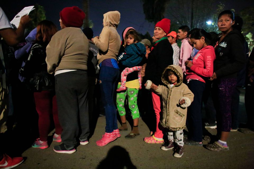 Også i latinamerikanske lande drømmer flere indbyggere om at emigrere, særligt til USA. Her ses en gruppe migranter vente i en kø i Tijuana i Mexico på grænsen til USA. Foto: Rebecca Blackwell/AP