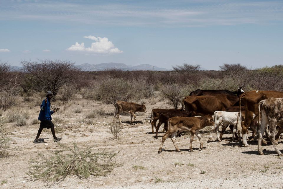 Kvæghyrden Gideon Moses har siden december boet i et lille, støvet telt, mens han har passet en flok afmagrede køer. Her i hjertet af Namibia er der tørt. Endnu mere tørt end normalt, fordi regnen, der skulle være kommet i december, indtil videre kun har givet nogle få forkølede regnbyger.