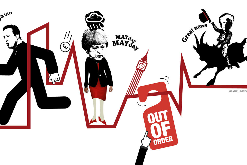 Vælgerne overraskede, kaos brød ud, speakeren forsøgte at få orden i parlamentet, Theresa May tabte og gik i tårer, og til sidst kom en bombastisk, blond politiker ind fra højre og reddede brexit.