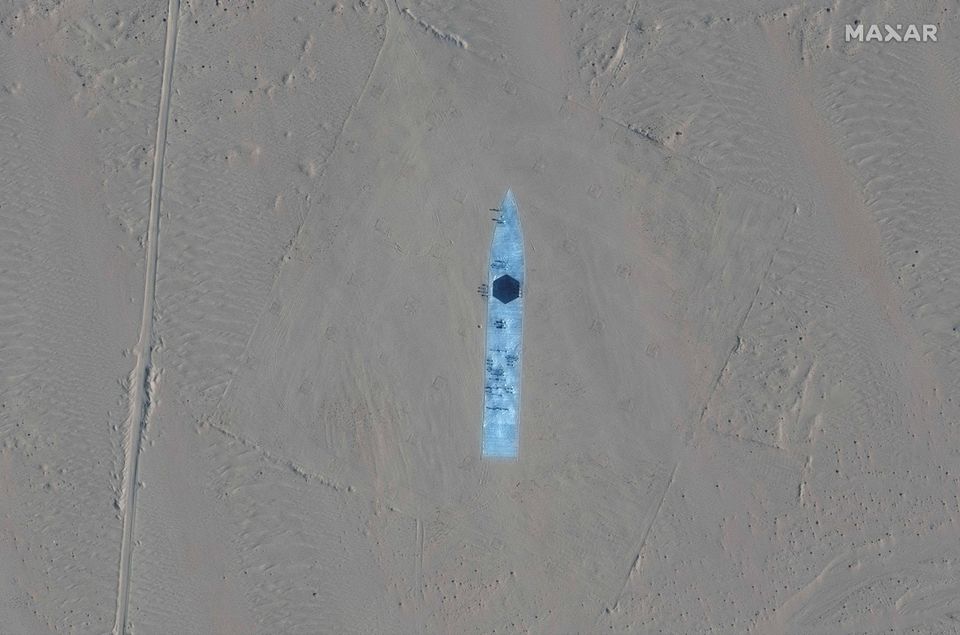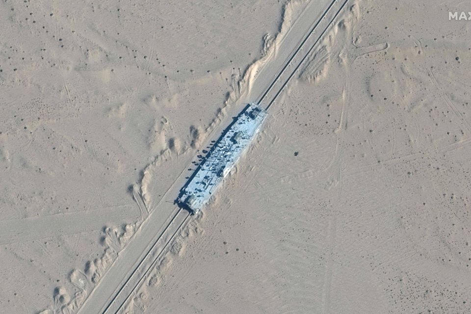 Kinas militær har tilsyneladende bygget flere fuldskalamodeller af amerikanske krigsskibe i en ørken i den nordvestlige region Xinjiang.
