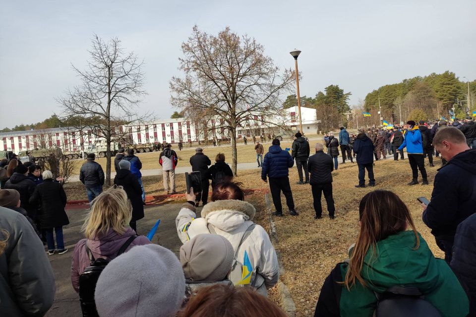 Herefter gik borgere på gaden med et stort ukrainsk flag med retning mod hospitalet, mens de råbte slagord. Det oplyser den lokale administration i byen.