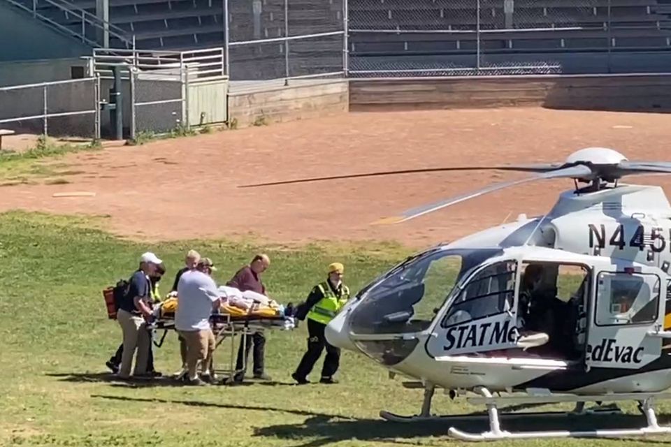 Politiet oplyser, at Rushdie blevet fløjet med helikopter til et nærliggende hospital i den vestlige del af delstaten New York.