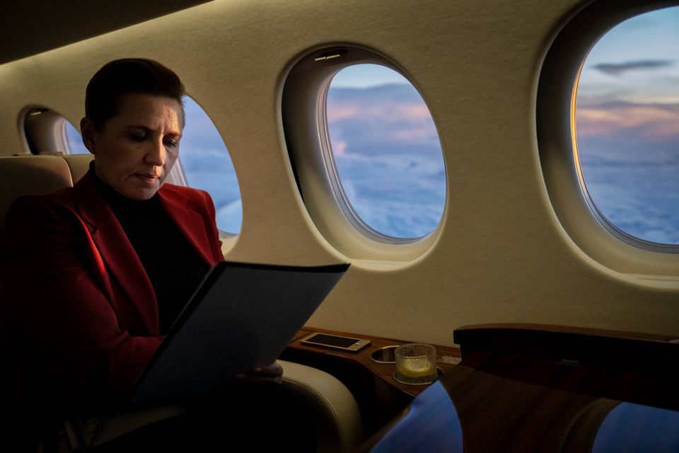 Da hun efter en lang dags rejse, som tirsdag bragte hende både til Berlin, Paris og Bruxelles, taler med Jyllands-Posten, griber hun efter en af de forseglede sikkerhedsposer, som endnu ikke er brudt. Mette Frederiksen flår i plasticposen, hiver akterne ud, tager sin briller på og retter blikket mod det papir, som ligger øverst i bunken.