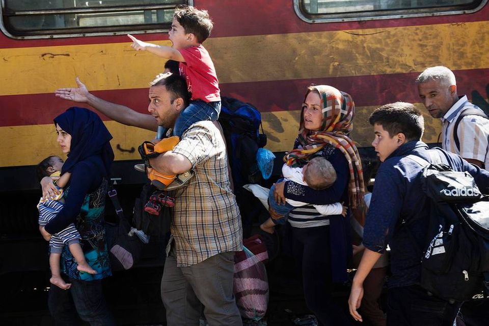 En menneskelig bølge vælter ned langs banelegemet fra Grækenland. Flere tusinde går, ligger og står på perronen og jernbanesporene. Der hersker kaos og eufori.