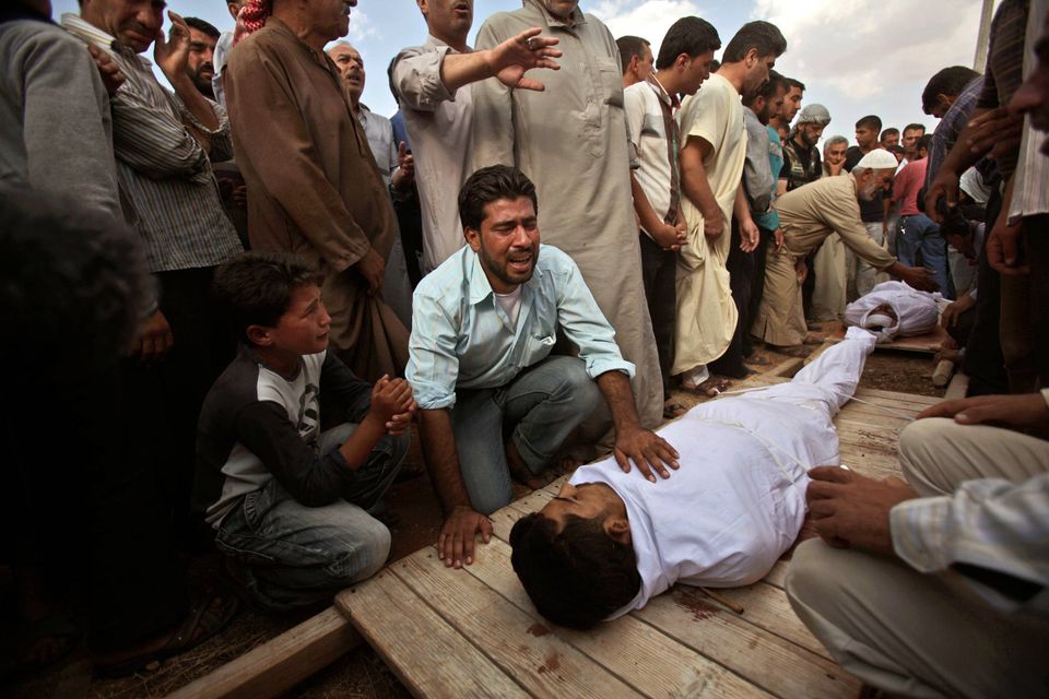 Januar 2013: Organer begynder at skylle op på bredden af Aleppo's Queiq flod, i oprørernes kvarter Bustan al-Qasr. Human Rights Watch siger mindst 147 lig blev fundet i floden mellem januar og marts. Ofrene blev sandsynligvis dræbt i de regeringskontrollerede områder.