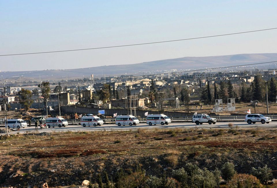 Cirka kvart i otte kommer de første meldinger om, at den første konvoj af sårede fra den oprørskontrollerede del af Aleppo sætter sig i bevægelse. Konvojen kører mod vest. Her kører den gennem de regeringskontrollerede områder og ud til et område vest for Aleppo, som oprørsstyrker kontrollerer. Ifølge en ledende læge i den oprørskontrollerede del af Aleppo er omkring 200 mennesker med i konvojen. Kvart i ni er der meldinger om, at konvojen af ambulancer bliver beskudt af regeringsstyrker.