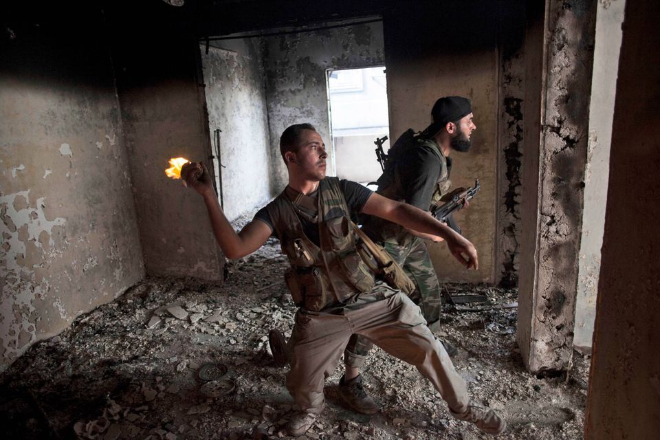 Oktober 2012: F.N. forhandler en kortvarig våbenhvile for hele byen under den muslimske Eid al-Adha ferie. Kampene ødelægger kulturelle og historiske steder, herunder Grand umayyadiske-moskeen, som begge parter kæmpede for at kontrollere. Foto: AP