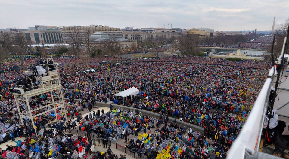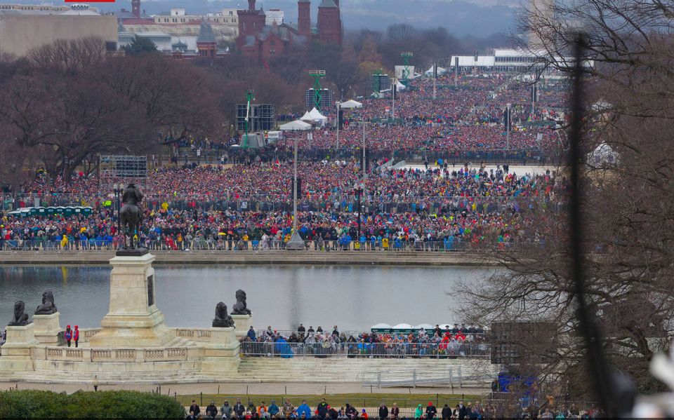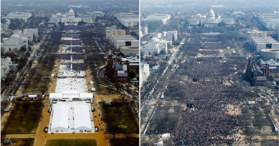 Ifølge Trump selv var omkring 1,5 million mennesker mødt op til hans indsættelsesceremoni ved The National Mall i Washington. Mange har bestridt denne påstand ved at fremlægge oversigtsbilleder som bevis. Samtidig har Trump tilhængere sået tvivl om billedernes troværdighed i dokumentationssammenhæng.