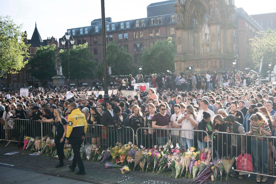 Borgerne i den engelske by Manchester var i sorg efter at en bombe mandag aften dræbte 22 og sårede 59 personer. Bomben sprang umiddelbart efter en popkoncert i Manchester Arena.